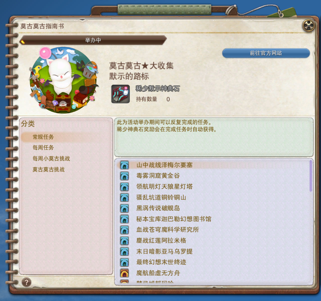 在莫古莫古大收集活动举办期间只能完成一次的挑战。