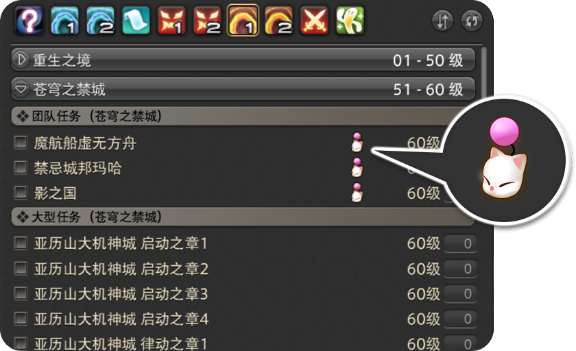 任务搜索器中带有莫古力图标的任务就是对象副本。